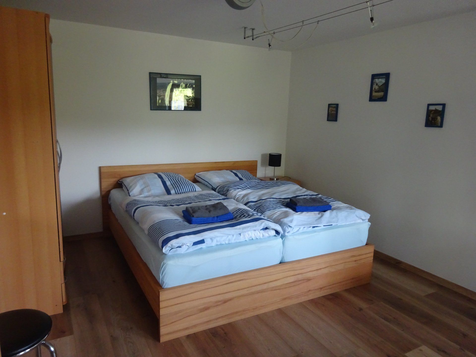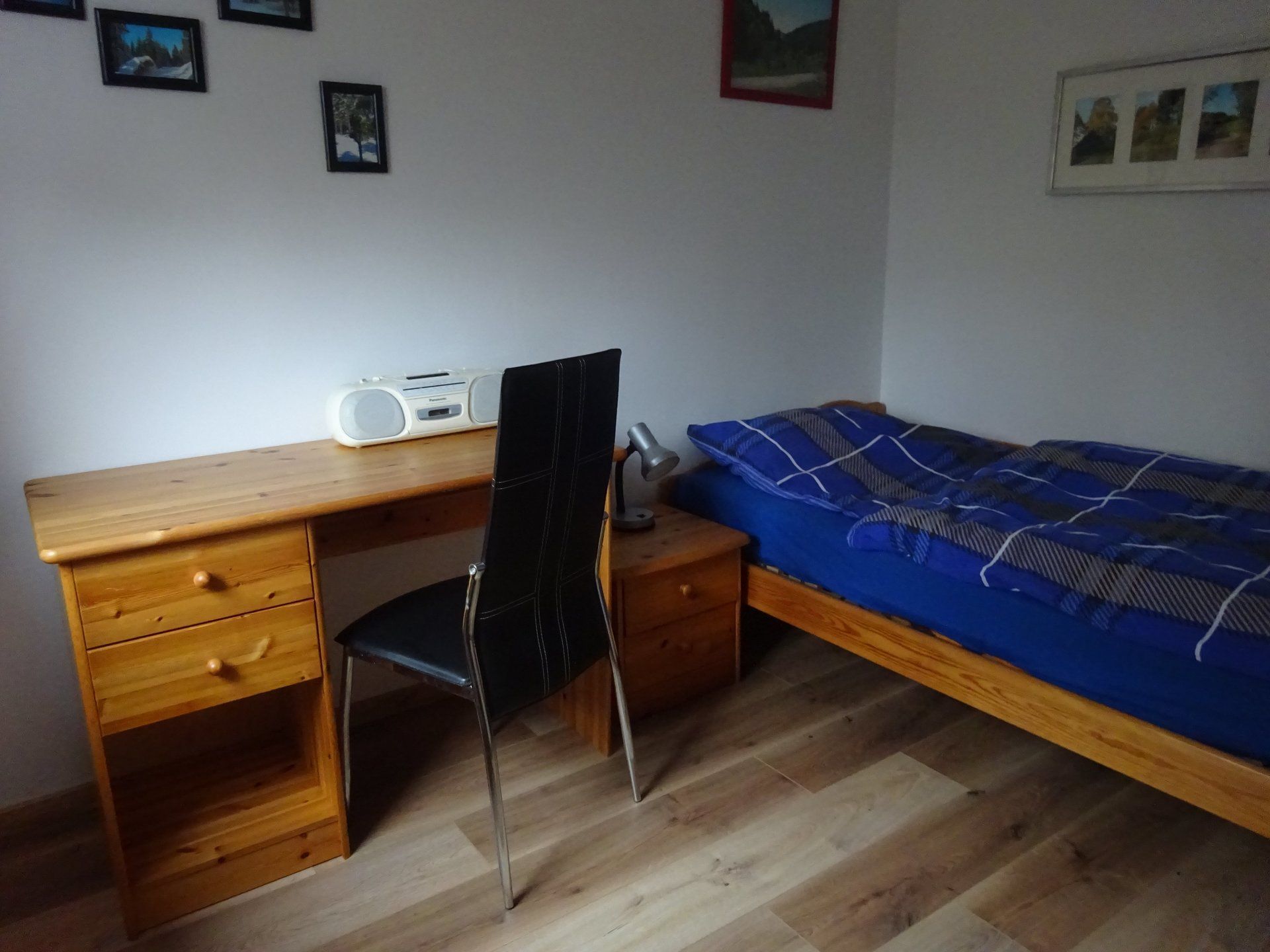 Unsere Ferienwohnung hat einen separaten Eingang und bietet Platz für 3 Gäste. Sie besteht aus einem gemütlichen 24 qm großen Wohn-Schlafzimmer für 2 Personen mit Doppelbett und einem kleinen separaten Schlafzimmer für eine Person (Kind, Schnarcher).