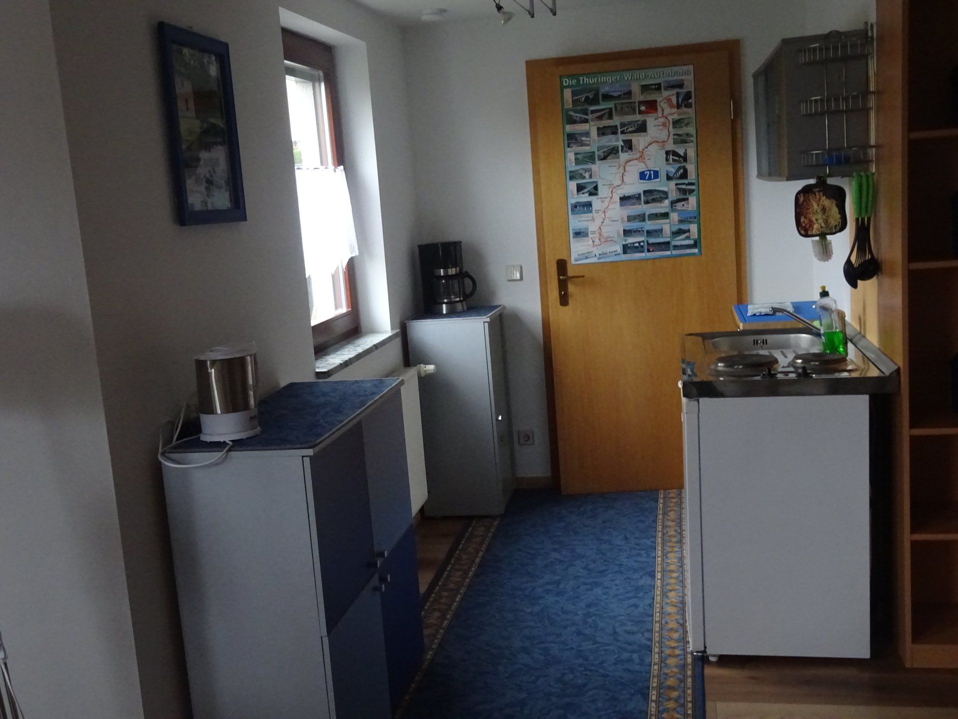 Zu Ihrer Selbstverpflegung stehen Ihnen eine Miniküche mit Kühlschrank und 2 Kochplatten, Kaffeemaschine, Toaster und Wasserkocher zur Verfügung.