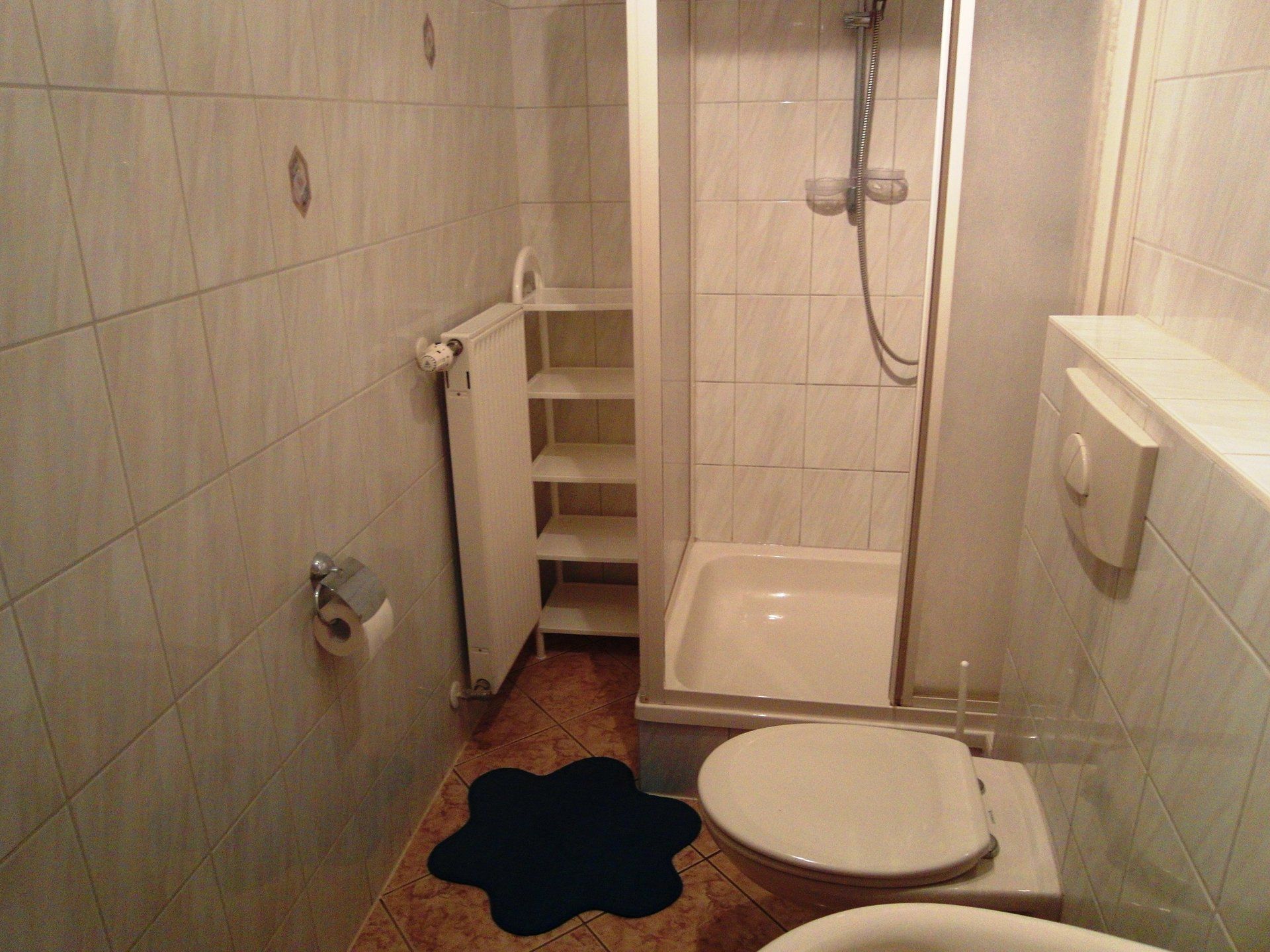 Im kleinen Badezimmer befinden sich Dusche und WC.
